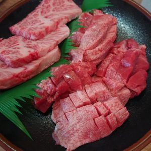 お肉は、地元で人気の精肉店正直屋さんから、その日に仕入れた厚切りの国産肉です。厚切りお肉をご用意いたします。